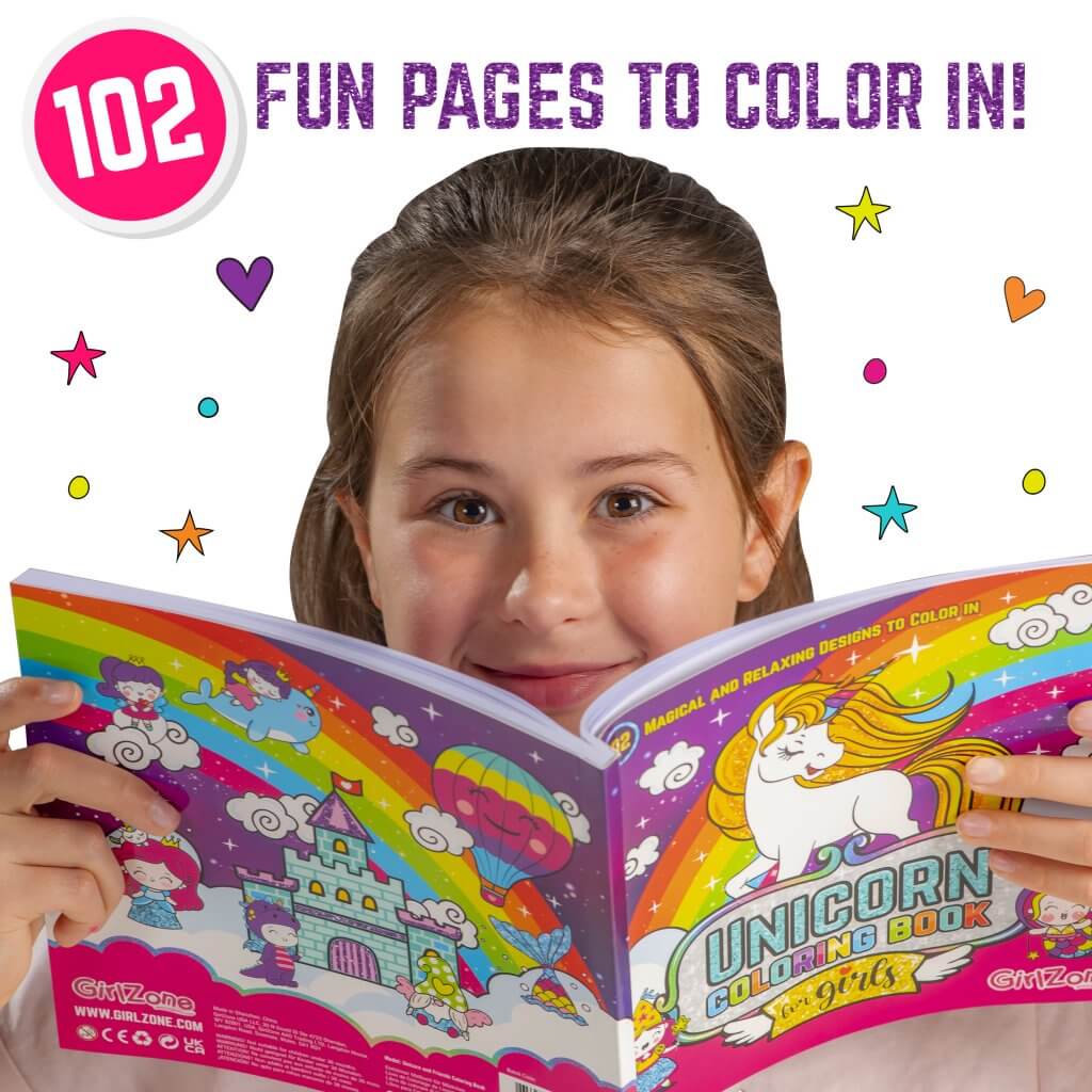 Have hours of fun with the Unicorn Colouring Book. Different levels of picture colouring allow children to use their own rate of progression in a fun, calm and relaxing way. And with 102 awesome picture pages, these books will give girls a much needed break from screen time and a chance to discover their creative ability.