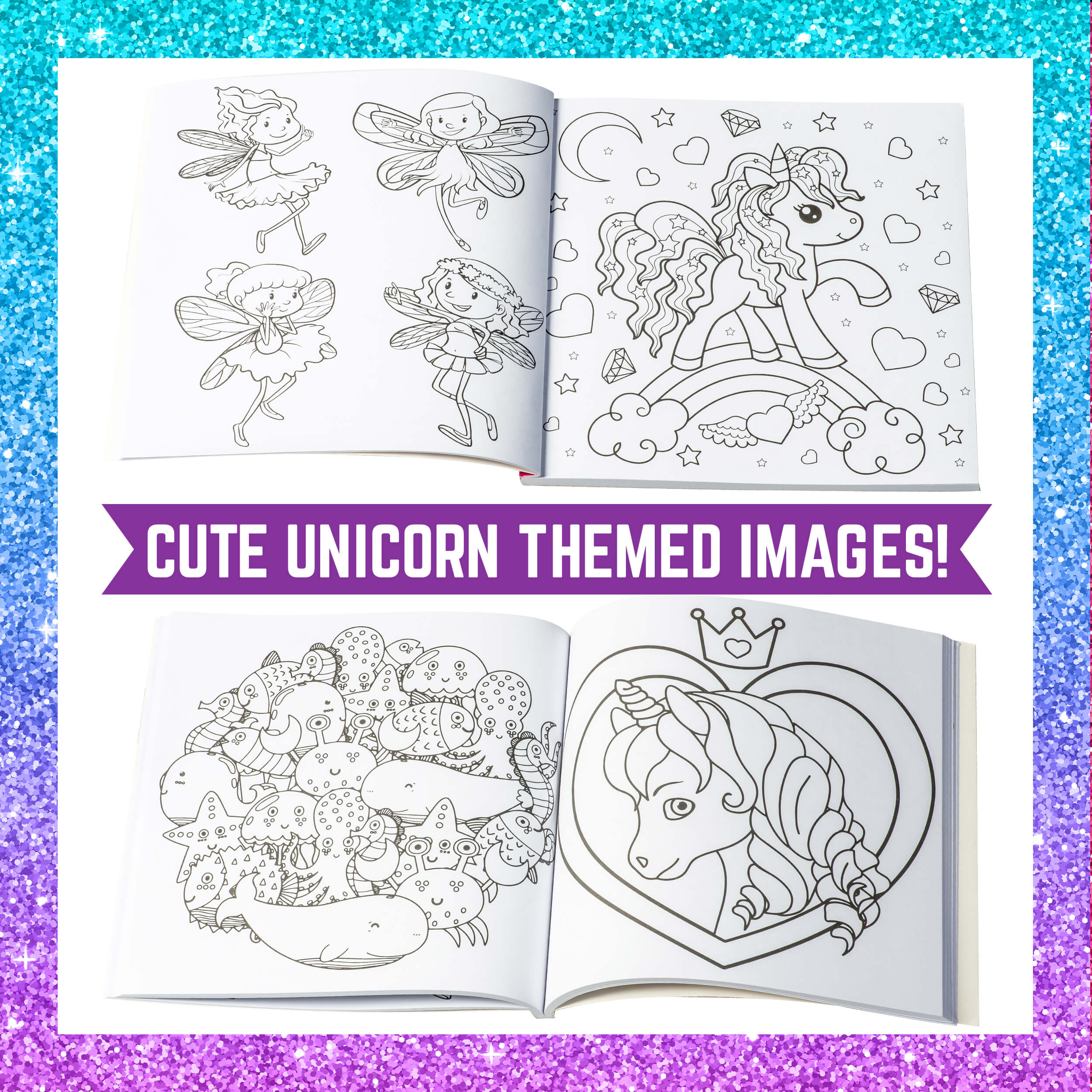 - This Unicorn colouring book has exclusive designs including Unicorns, cupcakes, puppies and Mermaids